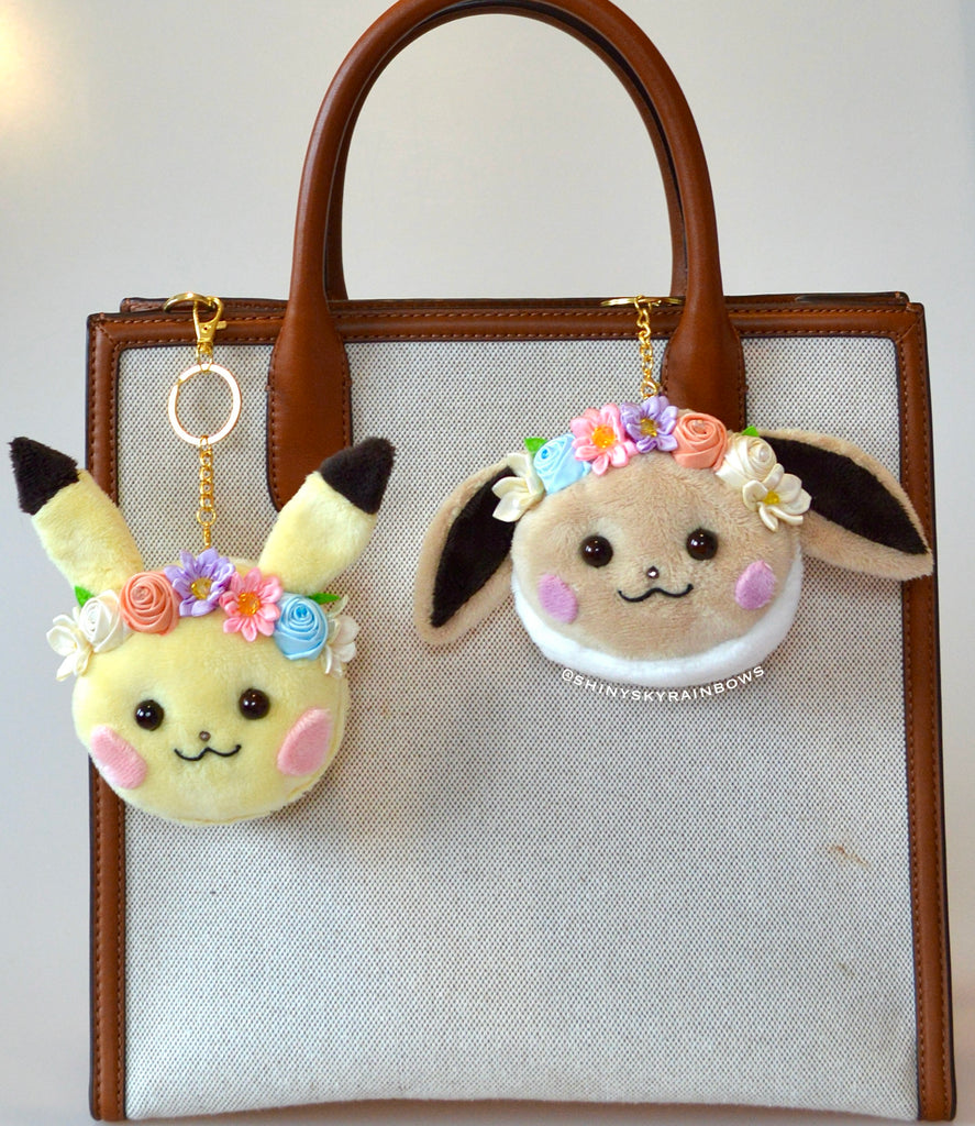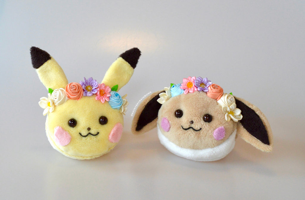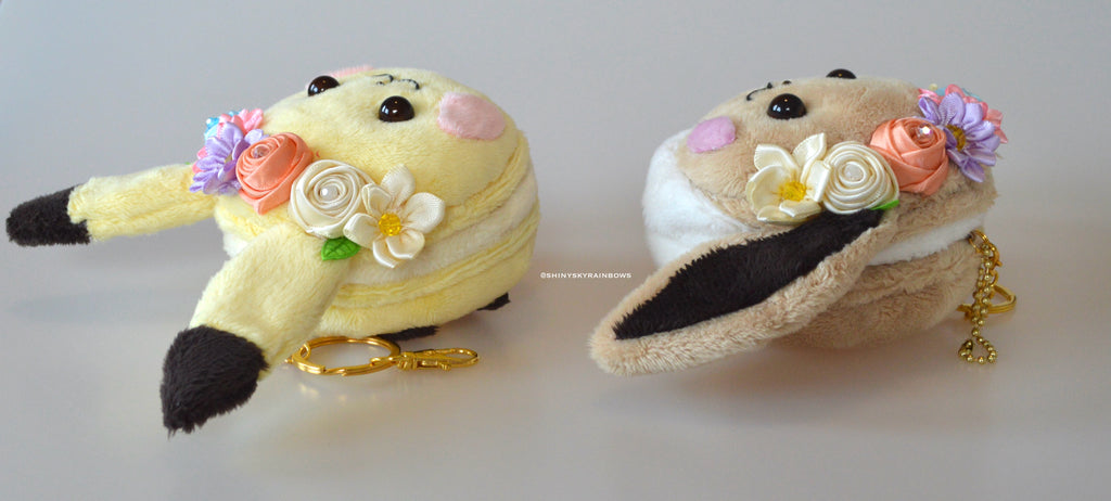 1 Game Monster inspired Yellow or Brown Macaron Accessory Plush (decorated with satin flowers and shimmering beads)